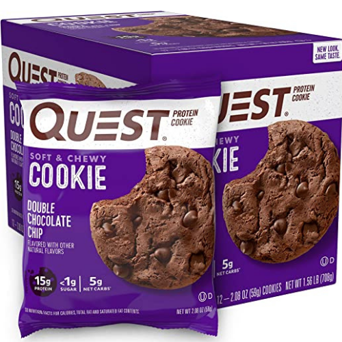 - YOU DESERVE A COOKIE: The Quest Double Chocolate Chip Protein Cookies provide you with a sweet, soft & chewy cookie with 15g protein, 5g net carbs and less 1g of sugar.