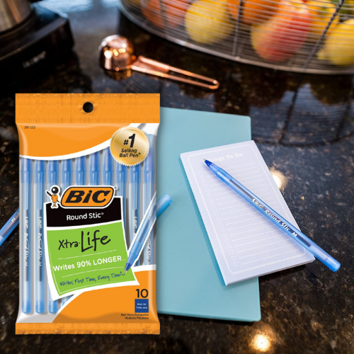Hop over to Amazon and get a deal on 10-Count BIC Round Stic Xtra Life Blue Ballpoint Pens. Great for daily use at home, school, or the office, this pen writes 90% longer. It features a versatile 1.0mm medium point that creates vivid lines and has a reliable tungsten carbide ball point that spreads the ink smoothly and evenly, making this pen ideal for a variety of writing applications from note-taking to doodling. Choose to Subscribe & Save, and you will score a great deal. Just make sure you have 5 or more items in your monthly order to max out the available discount of 5% off this item = $0.92 or just 9¢ each pen! Subscribe & Save shipping is free! This is a great deal, compared to $3.18  at Walmart – and that doesn’t even include shipping!