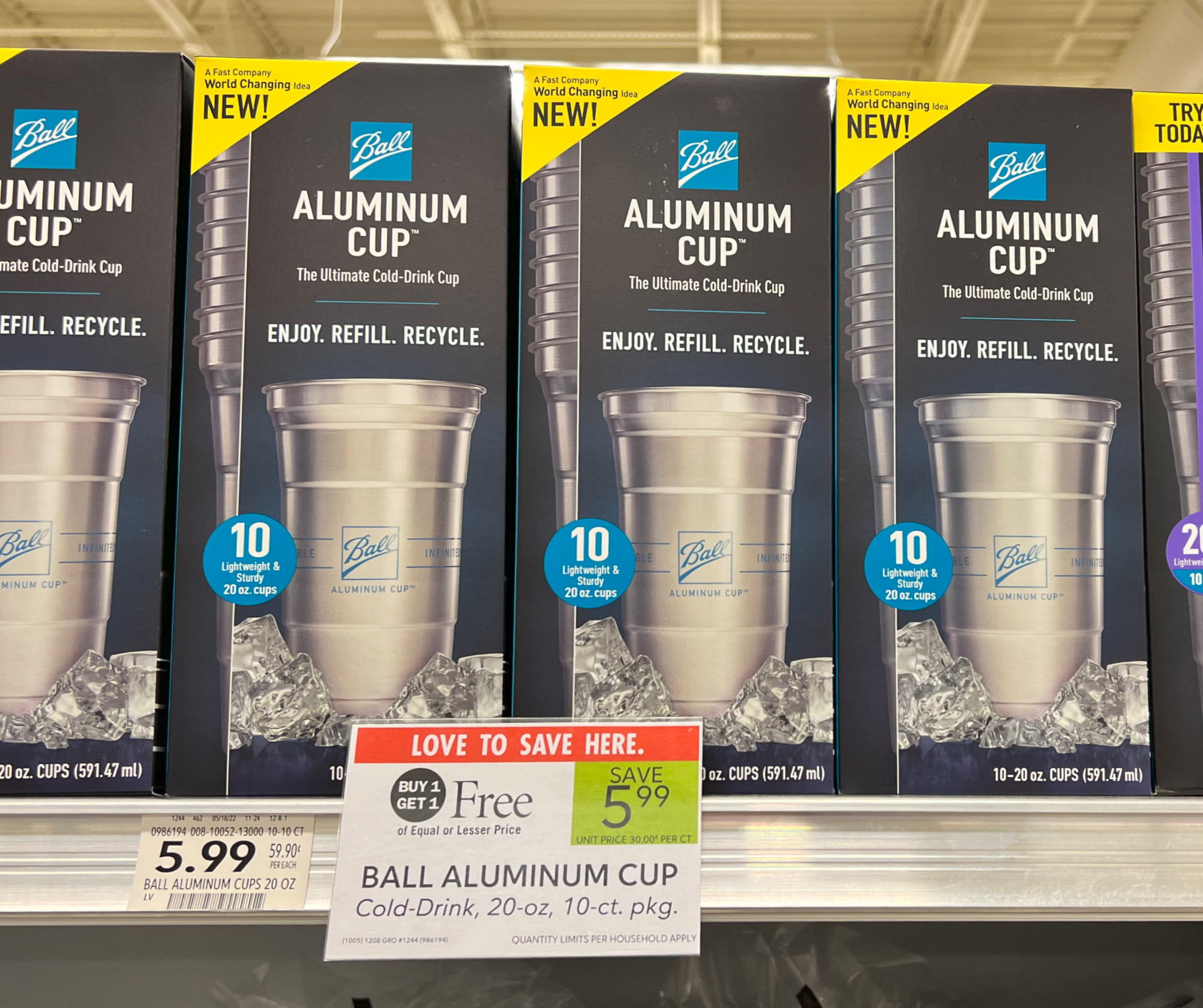 It’s a good time to pick up the boxes of Ball Aluminum Cups. Use the BOGO sale and coupon to pay just $2 per pack!