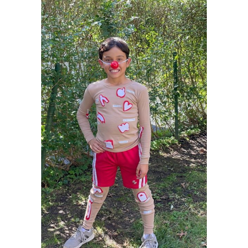 Use red and white felt to cut out shapes that look like the Operation game. Print or write the names of body parts on papers and stick your felt and papers to a pair of pajamas. Voila! A cute and unique costume.