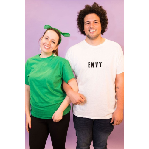This couple’s costume will be the hit of the party and takes literally 10 minutes to put together.