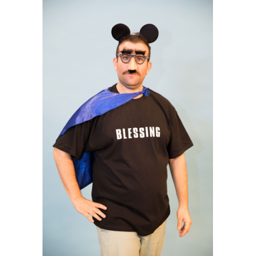 This has got to be the fastest one on our list to make. Either print letters and glue them on, or write Blessings on a shirt with a marker. Then you can add any type of disguise you happen to have around. Hats, wigs, glasses, etc.
