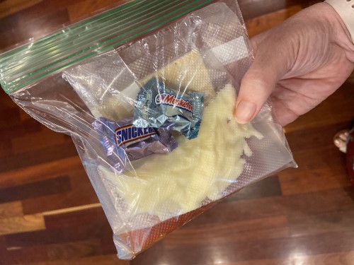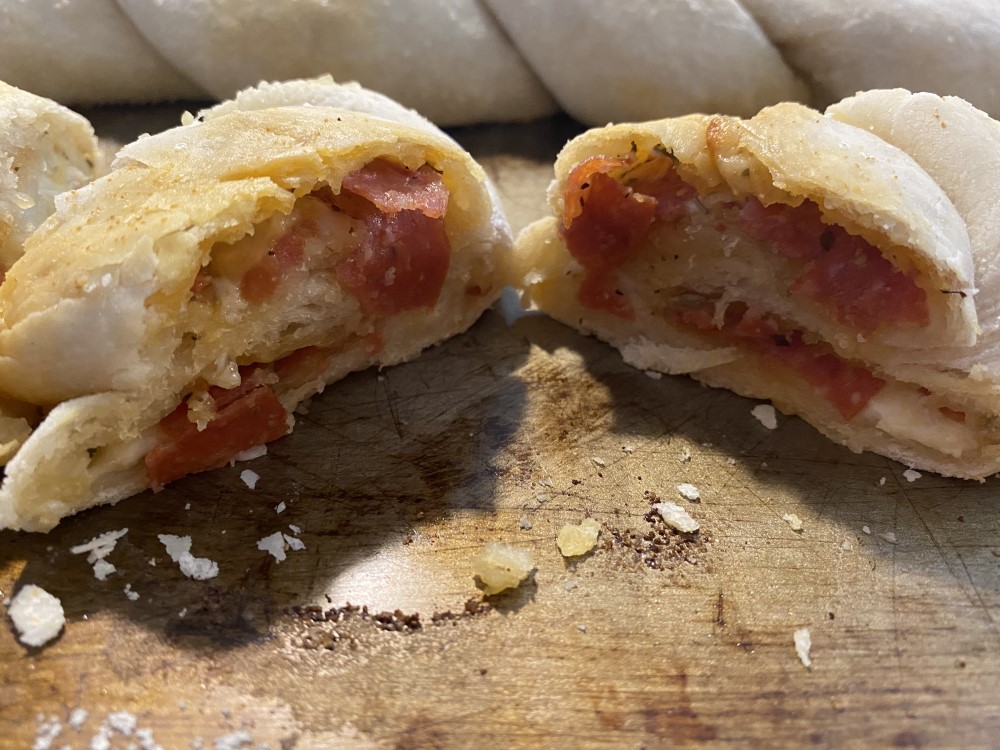 Whenever we go on road trips and are going to eat lunch in the car, we pack pizza bread. It’s still really good at room temperature and my kids love it way more than sandwiches!