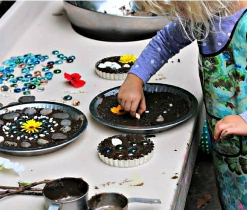Take some dirt, mix in some water, and make a mud pie! Add different objects from nature and decorate it to make your very own version of mud pie. This is not only great for creativity, but it allows for sensory exploration as well.