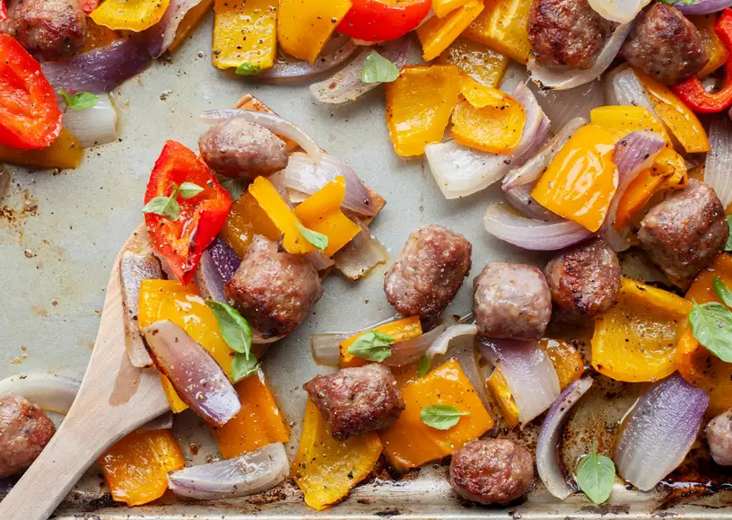 Roasting peppers as part of a sheet pan dinner, like this sheet pan sausage and peppers, is another way to really bring out the flavor. You can also roast just vegetables—throw peppers, onions, potatoes, squash, and carrots on a sheet pan and roast them, and you have an amazing side dish.