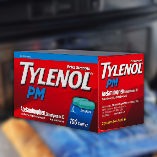 - 100-count bottle of Tylenol PM Extra Strength Caplets Nighttime Pain Reliever & Non-Habit Forming Sleep Aid to provide minor pain relief and help you fall asleep fast