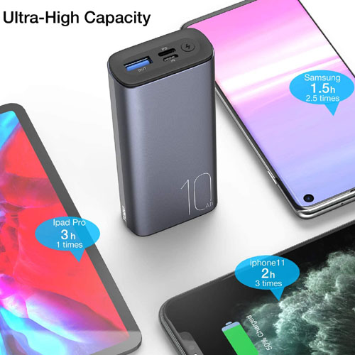 • Light and Compact: Exquisite and portable, handheld size and lightest 10000mAh portable charger. Unique Aluminum alloy design with frosted metal case, high-end texture, Anti-Fingerprints design, more cleanly on its surface when you hold it in any places.