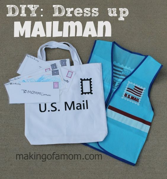This dress up outfit is so fun – grab a mailman vest from JoAnns Craft Store and you’re basically set. I like this one because it gives the kids a chance to be creative and create their own letters and postcards to put in their mail bag! Just grab a canvas tote from around the house to use as a mailbag and the outfit is complete.