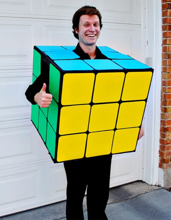 This costume is quite simple – start with a large cardboard box and just use paint or cut out colored construction paper to make the squares on each side.