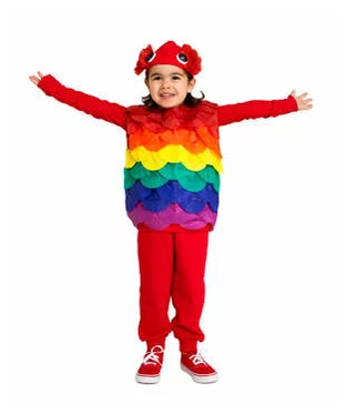 For this cute outfit, you just need a red sweatshirt and pants (even an old t-shirt would do since you will end up covering it up), a hot glue gun, some colorful cupcake liners, and a ping pong ball. The cupcake liners make the colorful scales of the fish and the ping pong balls are glued to a hat to make the fish eyes.
