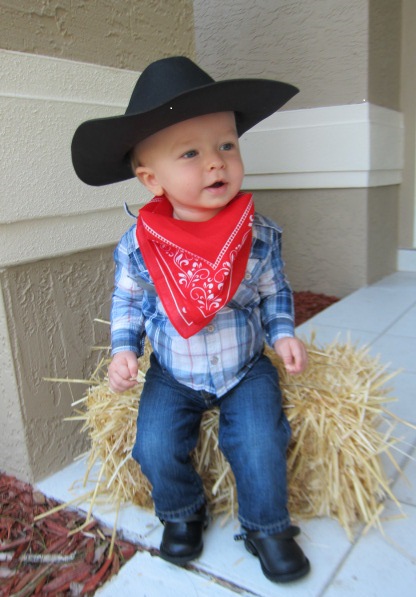 All you need for this one is a plaid shirt, jeans, a bandana, and a cowboy hat. The bandana and cowboy hat are dress up box essentials.