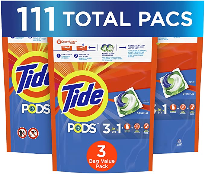 Hop over to Amazon and get a deal on 111 Count Tide PODS Liquid Laundry Detergent Pacs, Original (3 Packs, 37 Count per Pack). These are 3-in-1 laundry pacs that act as a super concentrated detergent, extra odor fighter, and stain remover in one. These also dissolve quickly and work with all washing machine types. Clip the $3 coupon. Choose to Subscribe & Save, and you will score a great deal. Just make sure you have 5 or more items in your monthly order to max out the available discount of 15% off this item = $21.20, minus the coupon – $18.20 or $0.16/pac! Subscribe & Save shipping is free! This is a great deal, compared to $0.31/pac for this 16-count Pack at Walmart!