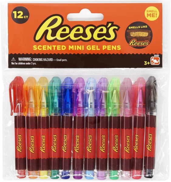 - REESE’S CANDY SCENTED GEL PENS: 12 pack of Reeses pieces assorted mini gel pens.