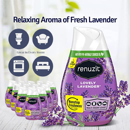 - This package contains 12 Renuzit Adjustable Solid Gel Air Freshener Cones in Lovely Lavender Scent