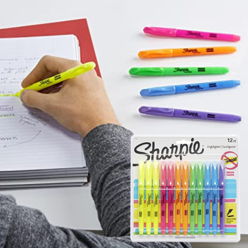 Hop over to Amazon and get deal on 12 Count Sharpie Pocket Highlighters, Chisel Tip, Assorted Colors. Featuring smooth, quick-drying ink, the Sharpie Pocket Highlighter makes it easy to mark up important documents without smearing or smudging the text. Use this to mark important sentences, passages, and for creating Sharpie art! The set includes: 3 Yellow, 2 Pink, 2 Orange, 2 Green, 2 Blue and 1 Purple fluorescent highlighter. You can get this for the same price at Walmart.