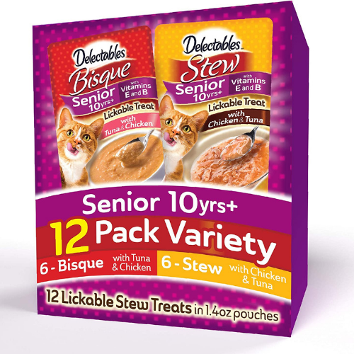 • BREADTH OF TEXTURES: Delectables offers a wide variety of textures supporting the overall health of senior cats 10+ years: Stew, Bisque, Chowder, and Squeeze Ups, the first interactive Cat Treat.