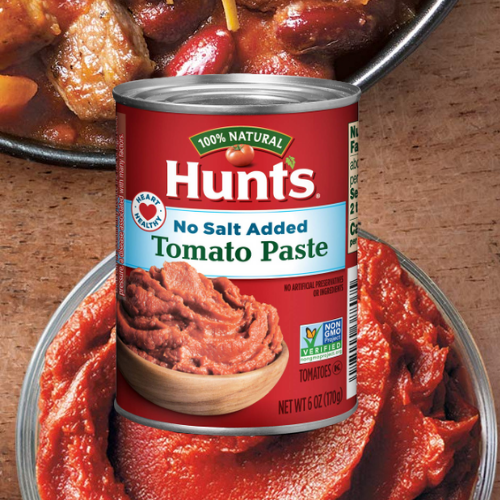 • Simmered with natural spices, Hunt’s no-salt-added tomato paste is perfect in low-sodium chili, soups, and stews