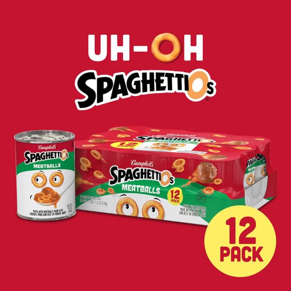 - Twelve (12) 15.6 oz cans of SpaghettiOs Canned Pasta with Meatballs