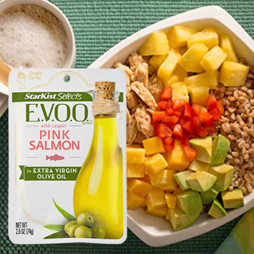 - ADD VARIETY TO YOUR DIET: StarKist E.V.O.O. Wild-Caught Pink Salmon is perfect in a sandwich, on a salad or crackers, or straight from the pouch. It’s an easy way to add seafood to your diet & fits well with Keto, Mediterranean & Paleo diet plans.