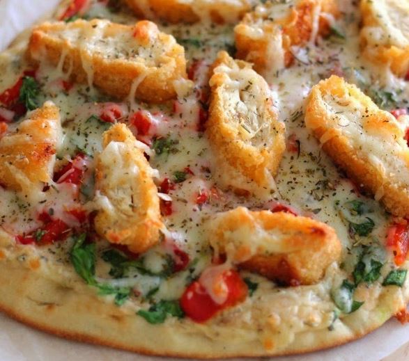Crispy Chicken and Roasted Garlic Flatbread Pizza