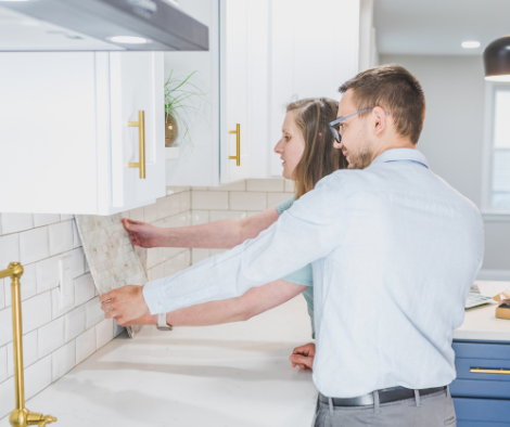 Install a DIY tile or peel-and-stick backsplash in your kitchen or bathroom to add visual interest and protect walls from splashes and spills.