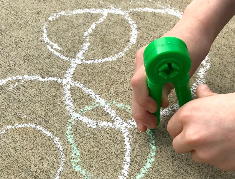 Use protractors and chalk to make some fun art outside in the driveway on Pi Day.
