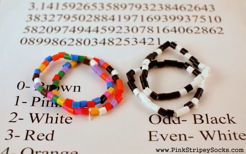 I love this idea! You can make bracelets in a bunch of different ways to represent pi.