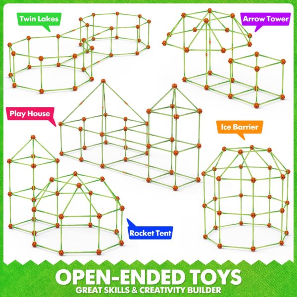 • Improved Connection – In order to solve the pain points of instability and difficulty in installation, we designed a new connector ball and poles with the click mechanism. It’s easy to assemble – no great force needed – and easy to pull apart when we’re finished. The patented connecting ball makes the fort structure will be very strong, the kids can cover it with a sheet or blanket for hours of fun.
