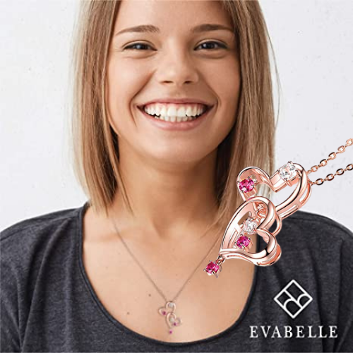 - EVABELLE Double Hearts Necklace for Women 925 Sterling Silver 14K Rose Gold Plated