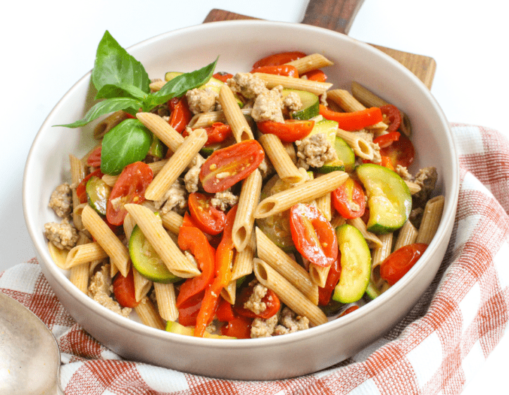 Ground Turkey Pasta with Tomato Garlic Sauce