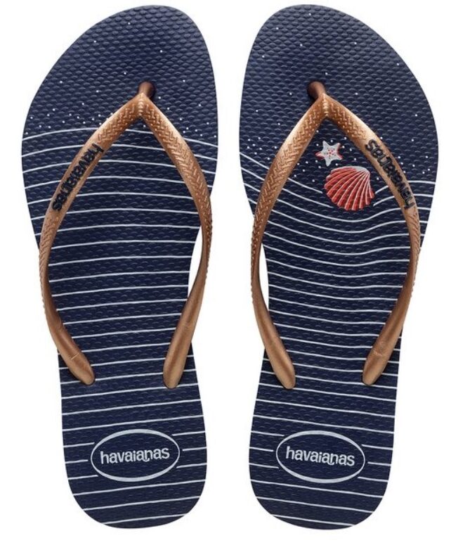 Havainas Navy Blue & Rose Gold Nautical Slim Flip-Flop – $19.99 (reg. $34)
