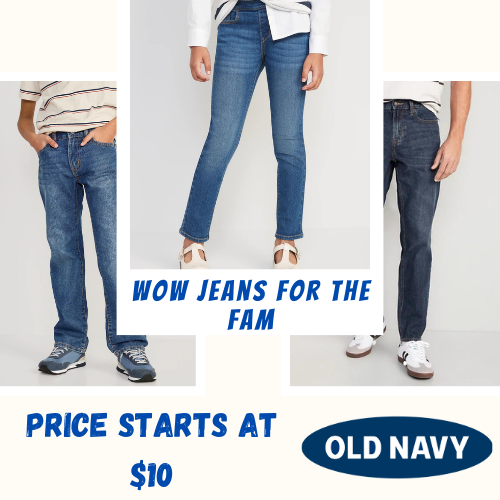 Hop over to Old Navy and get a deal on Wow Jeans for the Fam. Discover denim delights for the whole family! Dive into our collection of jeans for men, women, kids, and toddlers. From classic cuts to trendy styles, we’ve got the perfect fit for every member of the family.
