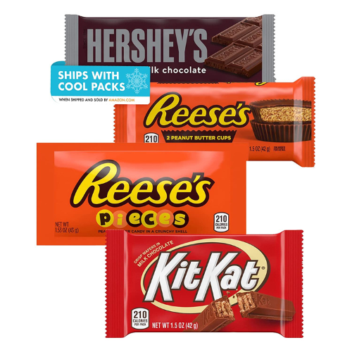 - Movie night snacking, s’mores making, gift bag prep, and Halloween candy bags are made easy with this full-size candy bar assortment, offering four popular options