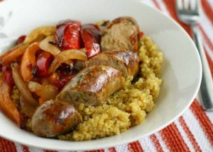 Sausage, Peppers and Onions with Curry Spiced Quinoa | The Pretty Bee