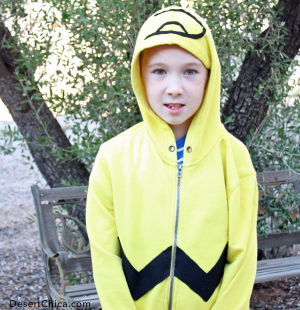This costume idea is so simple. You just need a yellow hoodie and some black felt!