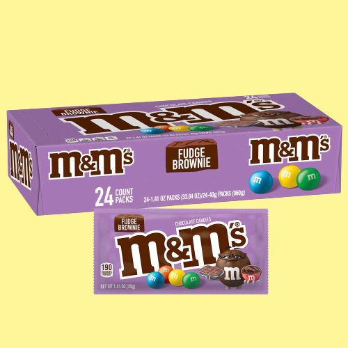 - Contains twenty-four (24) 1.41-ounce singles size packs of M&M’S Fudge Brownie Chocolate Candy