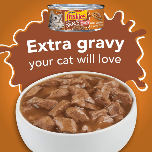 • Twenty-Four (24) 5.5 Oz. Can – Purina Friskies Extra Gravy Chunky With Chicken In Savory Gravy Wet Cat Food