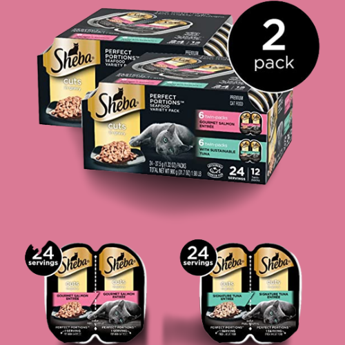 Hop over to Amazon and get a deal on 24 Servings Sheba Perfect Portions Cuts Wet Cat Food, Variety Pack (TWELVE 2.6 oz. servings each of Gourmet Salmon and Sustainable Tuna). This cat food comes in easy-to-use trays – just snap, peel and serve. This has no artificial flavors or preservatives, and individual food trays means there’s less mess and leftovers, unlike canned cat foods. Your fur babies will surely love this. Choose to Subscribe & Save, and you will score a great deal. Just make sure you have 5 or more items in your monthly order to max out the available discount of 10% off this item = $9.88 or $0.82 each serving! Subscribe & Save shipping is free! This is a great deal, compared to $11 at Walmart.