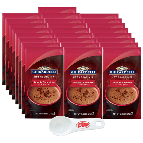 - 25 – 0.85 oz packets Ghirardelli Double Chocolate Hot Cocoa Mix
