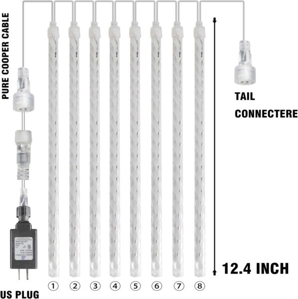 - Waterproof: The waterproof level of this Christmas meteor shower lights is IP65, suitable for indoor and outdoor use. UL certified, the voltage is 7V, which is lower than the safety voltage of the human body, and there is no risk of electric shock.