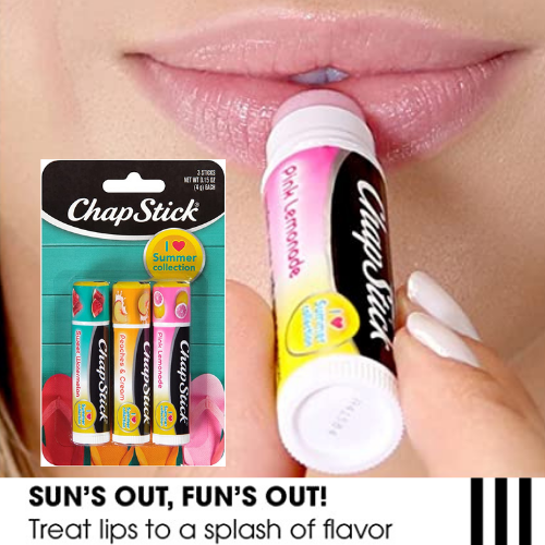 - Summer-inspired ChapStick variety pack with fun watermelon, pink lemonade and peach ChapStick lip balms that moisturize delicate lip skin