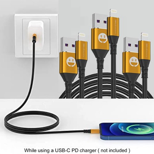 Hop over to Amazon and get a deal on 3-Pack 10ft Lightning Cable Long iPhone Fast Charging Cord for just $7 with 50% discount automatically applied at checkout. High-quality tinned copper wire maximizes signal quality and increases durability, Sync and charge at fast speeds on your devices. Charge around 10% faster than many standard cables and sync at speeds of up to 480Mbps through wide diameter 28 / 21 AWG data and power wires.