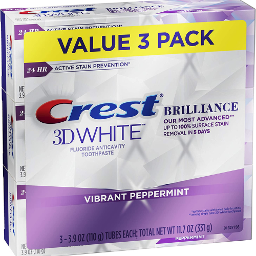 - You will receive (3) 3.9 oz tubes of Crest 3D White Brilliance Toothpaste in Vibrant Peppermint Flavor