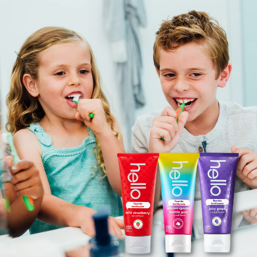 - Includes 1 grape toothpaste, 1 strawberry toothpaste, and 1 unicorn bubble gum toothpaste in this Hello Variety Pack Toothpaste for Kids, 4.2 oz. each