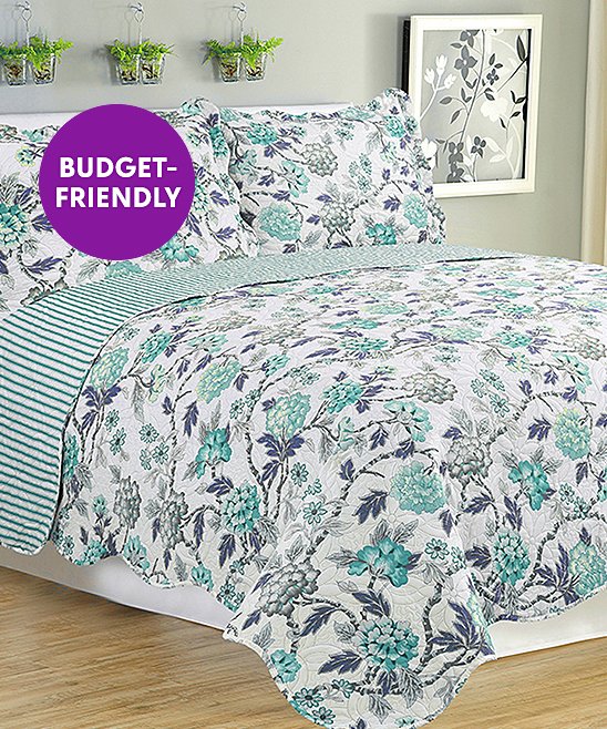 Aqua Blue Floral Kim Quilt Set, Queen, $18.99 (reg. $59.99)