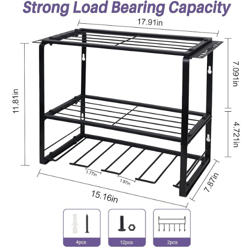 - Ultra Strong Carrying Capacity – The tool organizer wall mount is made of high quality material, after load bearing test, the tool shelf can withstand 100LB weight and long term use. It is also rust and corrosion resistant to maintain a long service life.