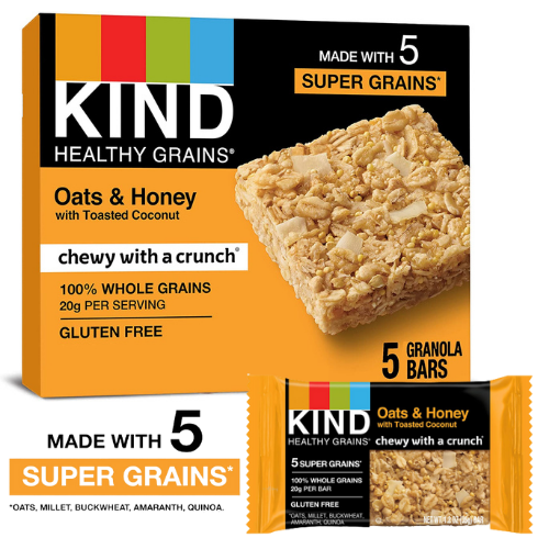 - Contains 30 – 1.2oz Oats & Honey with Toasted Coconut KIND Healthy Grains Bars
