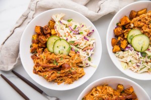 BBQ Chicken Bowls with Sweet Potatoes and Coleslaw | 40 Aprons