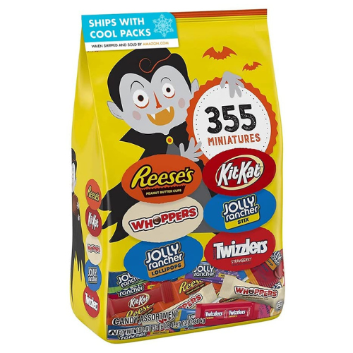 Hop over to Amazon and get a deal on 355-Count Hershey Miniatures Chocolate and Fruit Flavored Assortment Candy. Get ready for your Halloween parties and neighborhood trick-or-treaters with this delicious candy assortment of miniature Hershey candy that includes REESE’S milk chocolate peanut butter cups, KIT KAT milk chocolate wafer bars, WHOPPERS malted milk balls, JOLLY RANCHER Stix candy and lollipops and TWIZZLERS Twists strawberry-flavored chewy candy. Clip the 10% coupon to drop the price to $0.06/piece! This is a good deal, compared to $0.07/piece for this 275-count bag at Walmart – and that doesn’t include cool packs.