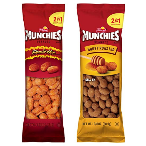 - 36 Count of 1.625 ounces bags of Munchies Flamin’ Hot Flavired Peanuts Peanuts